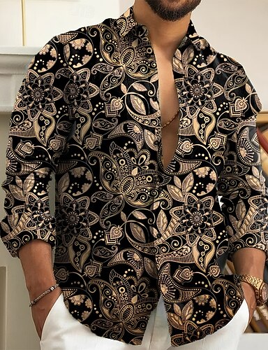 Homme Paisley Imprimé Floral Ethnique Chemise Chemise Boutonnée manche longue Vintage Rétro Fête Décontracté Quotidien Printemps Automne Col Rabattu Impression 3D chemises à col Bleu Violet Dorée