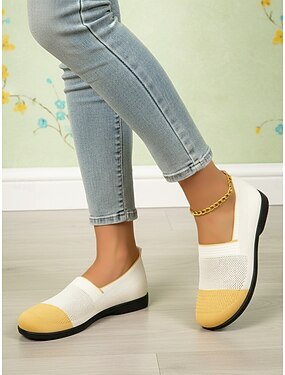 Chaussures plates Flyknit à enfiler pour femmes - Tige en tricot doux avec stretch confortable, légère et respirante, idéale pour les tenues décontractées et les sorties estivales