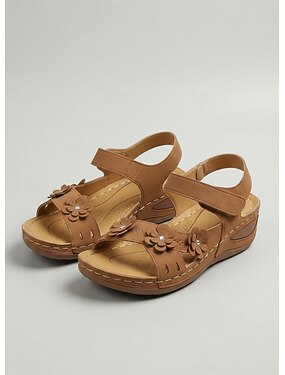 Sandales compensées marron à fleurs pour femme - semelle intérieure rembourrée et moelleuse, chaussures confortables et respirantes à bout ouvert, style bohème décontracté, idéales pour la marche, les