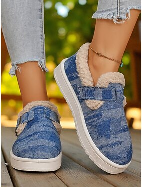 Bottes de neige d'hiver bleues pour femmes, bottines chaudes doublées de fourrure en peluche pour dames, chaussures de marche en plein air antidérapantes et par temps froid