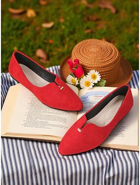Ballerines rouges en simili-daim à bout pointu pour femmes – chaussures de pique-nique confortables pour les après-midi d'automne, la lecture sur la pelouse et les rendez-vous autour d'un café en plein air