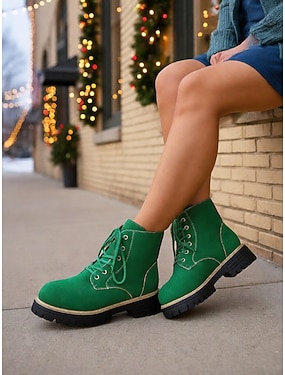 Bottines vertes à lacets pour femmes – un style hivernal tendance, idéal pour les fêtes de Noël, les activités de plein air et le quotidien