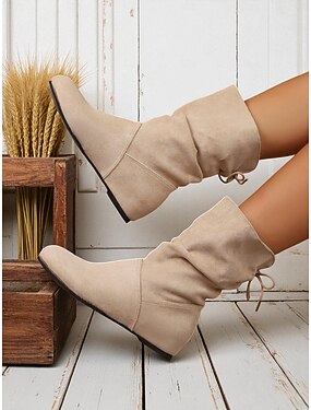 bottes mi-mollet en amande pour femmes – bottes plates et souples en similicuir à enfiler pour une tenue décontractée et quotidienne