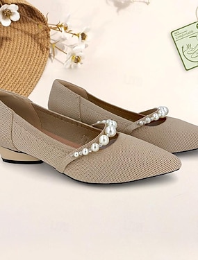 Femme Chaussures à Talons Grandes Tailles Chaussures Flyknit Chaussures souples Mariage Bureau Travail Strass Imitation Perle Talon Bottier Bout pointu Mode Classique Confort Marche Tricot Mocassins