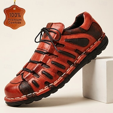 Chaussures décontractées en cuir rouge à lacets pour homme, confortables pour les voyages et le quotidien.