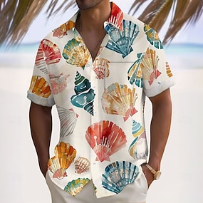 Homme Coquillage Conque Créatures de la mer Chemise Chemise hawaïenne Chemise Boutonnée Manche Courte Hawaïen Vacances Fête Tenue de plage Été Printemps Col Rabattu Impression 3D chemises à col Une