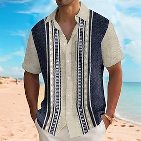 Homme Chemise Chemise d'été Chemise Décontractée Chemise de Plage Chemise Boutonnée Blanche Vert Bleu de minuit Bleu clair Manche Courte Rayures Col de chemise Vacances Hawaïen Vêtement Tenue