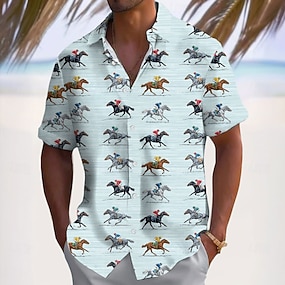Derby du Kentucky Homme Cheval Course de chevaux Chemise Chemise hawaïenne Chemise Boutonnée Manche Courte Sports Mode Streetwear Extérieur Occasionnel Hawaïen Été Printemps Col cubain Imprim