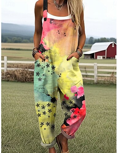 Femmes Salopette Actif Graphique Sans manches Imprimé Vacances Rue Coupe Ample Jaune Rose Claire Bleu Été