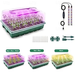 Plateau de germination avec lampe horticole, kit de germination avec dôme d'humidité, plateau de germination à luminosité réglable avec minuteur intelligent (3 modes, 4 durées), kit de germination
