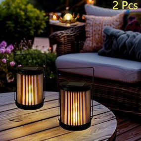 Lot de 2 lanternes solaires à flamme en fer pour extérieur, étanches IP65, portables &Lampes LED suspendues pour jardin, terrasse, clôture, escalier, marches, pelouse, allée, villa, fête, éclairage