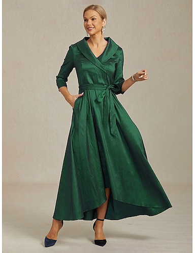 Femmes Longueur du thé Robe Portefeuille Élégant Fête Anniversaire Vacances Mariage robe demoiselle d honneur Froncé Coupe régulière Couleur Unie Manche Courte Col en V Vert cendré