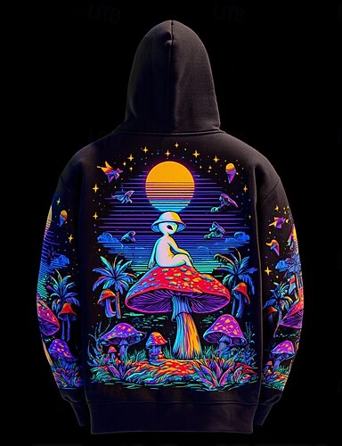 Homme Illusion d'optique Champignon Sweat à capuche Sweatshirt Mode Frais Hippie 3D manche longue Col ras du cou Maison Vêtements de rue Soirée Bleu Noir Bleu de minuit Cordon de serrage Automne Hiver
