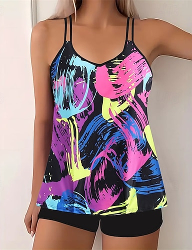 Tankini pour femmes 2 pièces maillot de bain palmier short contrôle du ventre taille haute dos nu vacances plage floral tournesol en V sans manches