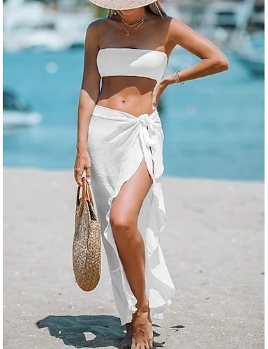 Femme Maillots de Bain Vêtement couvrant Envelopper Maillot de bain A Volants Vacances Tenues de plage Couleur unie Sans Manches Maillots de bain