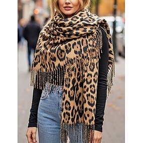 Écharpe à imprimé léopard pour femme – en polyester doux et confortable, disponible en plusieurs couleurs, parfaite pour une tenue décontractée et hivernale.