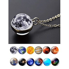 Collier pendentif planète pour homme, bijou en alliage et verre sous dôme, motifs variés du système solaire, style cosmique minimaliste idéal au quotidien et parfait comme cadeau.