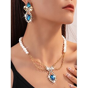 perle pour femme &Parure de bijoux en cristal bleu – collier élégant et boucles d'oreilles pendantes ornées d'un nœud – idéale pour les soirées et événements en soirée. &occasions spéciales