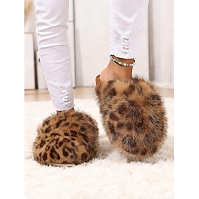 Pantoufles en fausse fourrure à imprimé léopard pour femmes – des chaussures d'intérieur douces et confortables pour se détendre et affronter le froid en toute tranquillité