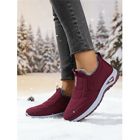 Chaussures d'hiver bordeaux à enfiler pour femmes avec bordure en fausse fourrure, bottines confortables pour temps froid, parfaites pour Noël, les achats des fêtes et les journées décontractées