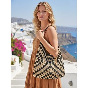 Sac cabas bohème tressé pour femme, grand sac à main crocheté multicolore, idéal pour les vacances d'été, la plage, les séjours en station balnéaire et le quotidien.