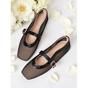 Ballerines Mary Jane en maille dorée pour femmes – élégantes chaussures à talon bas avec bride à boucle pour les sorties décontractées et le quotidien