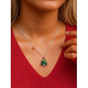 Bijoux de Noël en acrylique pour femmes – collier et boucles d'oreilles sapin festifs avec nœuds rouges, parfaits pour les fêtes et célébrations de fin d'année.
