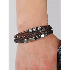 Bracelet pour homme en alliage de similicuir tressé multicouche magnétique, élégant et durable, convenant aussi bien à un usage quotidien qu'à des occasions spéciales.