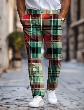 Homme Géométrique Tartan pantalon de costume Taille médiale Rétro Vintage Mode Décontractées Extérieur Vacances Intérieur Zippé Poche Eté Printemps Automne 3D effet Multi Couleur