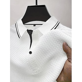 Homme Polo en maille torsadée Texturé Affaires Vacances Revers Manche Courte Mode Moderne Uni Boutons Respirable Été Printemps Noir Blanche Vin bleu marine Vert Kaki Polo en maille torsadée