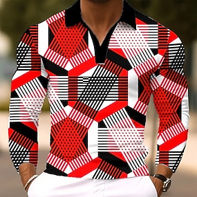 Homme Géométrique Polo manche longue Polos Revers Occasionnel Extérieur Rue Athleisure Tenue quotidienne Impression 3D Boutons Printemps Automne Hiver Rouge Bleu