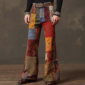Homme Géométrique Bloc de Couleur Patchwork Pantalons Pantalon Disco Pantalons pattes d'éléphant des années 60 et 70 Taille Moyenne Bohème Vintage Rétro Extérieur Soirée Occasionnel Poches Latérales