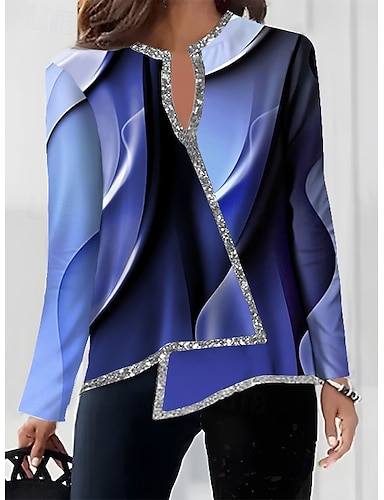 Blouse Femme Manches Longues Ourlet Asymétrique Imprimé Graphique Abstrait Hawaïen Chic Décontracté Col V Tops Classiques Quotidien Vacances Sortie Imprimé Noir Été Printemps Automne