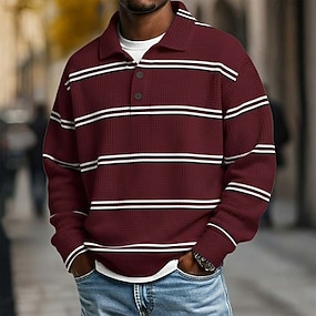 Homme Rayures horizontales Chemises Polo Gaufre Polo de rugby Texturé manche longue Polos Revers Vêtements de sport Occasionnel École Athleisure Tenue quotidienne Impression 3D Printemps Automne Hiver