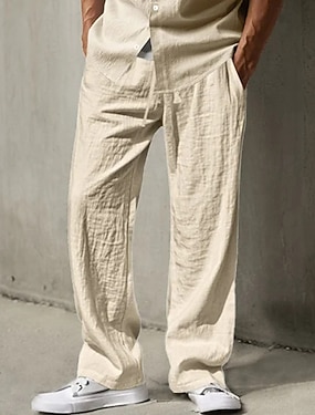 Homme Pantalons en Lin Pantalons Pantalon d'été Pantalons Amples Pantalons de Plage Cordon de serrage Taille Élastique Jambe Droite Uni Confort Respirant Longueur complète Occasionnel Quotidien Fête