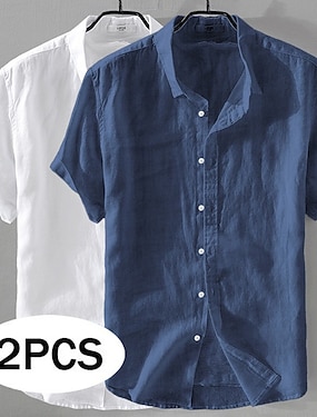 Homme Chemise Chemise en lin Chemise d'été Tenue de plage Chemise Décontractée Chemise Boutonnée Uni Occasionnel Plage Vert + Gris Blanc + Rose Noir + Bleu Marine Blanc + Bleu Marine Manche Courte