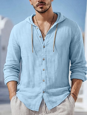 Homme Chemise Chemise en lin Tenue de plage Chemise Boutonnée Chemise à capuche Uni Occasionnel Quotidien Bleu Noir Blanche Vert manche longue À capuche Printemps & Été Été Vêtement Tenue Boutons
