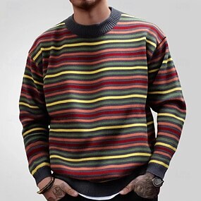 Homme Rayures horizontales Pull Tricots Col Rond Occasionnel Vacances Rue Quotidien Impression 3D Tricot Garder au chaud manche longue Printemps Automne Hiver Rouge Bleu Violet