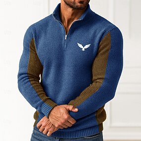 Homme Foi Pull Pull Zippé Pull Polo Mao Rétro Vintage Tenue de soirée du quotidien Vacances Brodée Zippé Tricot manche longue Automne Hiver Bleu Ciel Marron Vert