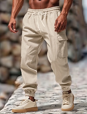Homme Pantalons Cargo Pantalons en Lin Pantalons Pantalon d'été Pantalon de jogging Taille Élastique Cordon de serrage Uni Confort Respirant Longueur complète Extérieur Occasionnel Quotidien Vacances