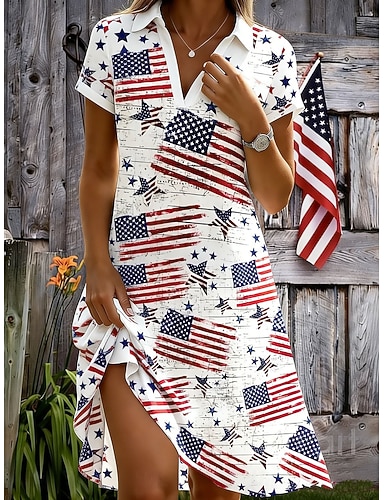Jour de l'Indépendance Américaine Femmes Robe Longueur Genou Robe trapèze Vacances Occasionnel Chaussures de plage Plage Coupe régulière Graphique Drapeau Manche Courte Col en V Bleu Noir Blanche