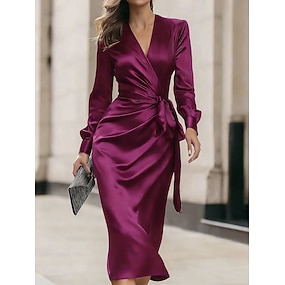 Femmes Robe Midi Robe en Satin Robe de Soirée Élégant Mode Moderne Extérieur Vacances Soirée Coupe régulière Uni manche longue Col en V Violet Été Printemps Automne