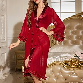 Femmes Lingerie sexy Pyjama en satin soyeux MailleNightwearPolyester Tenue quotidienne Date Valentin Couleur Unie Nouvel An Doux Noir Vin Printemps & Été Automne & Hiver
