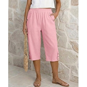 Femmes Bermuda Shorts Shorts d'été Vacances ancien Mode Longueur Genou Taille haute Couleur Unie Uni Avec Poches in in france they say Pontalon wide leg Confort Léger Doux Non Elastique Vêtements de