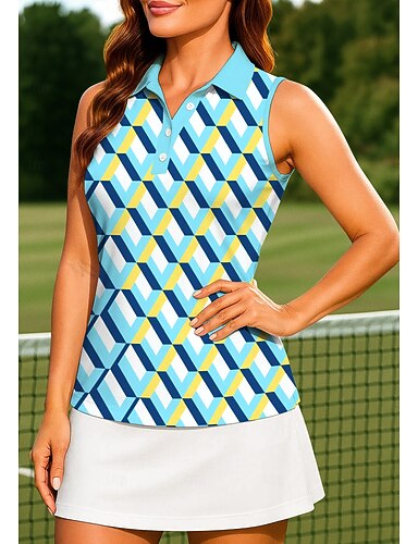 Femmes Géométrique T-shirt de sport T-shirt POLO Débardeur Chemise de tennis Sans manches Floral Boutons UPF50+ Résistant aux UV Haute élasticité Évacuation de l'Humidité Respirant Volley-ball Tennis