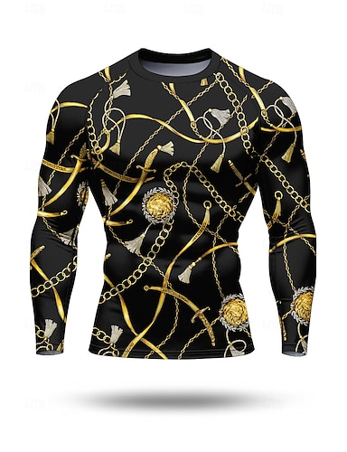 Homme Rayé Floral T-shirt de compression T-shirt de course Printemps Automne Impression 3D manche longue Séchage Rapide Compression Power Flex Évacuation de l'Humidité Respirant Entraînement en salle