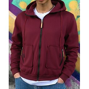 Homme Sweat à capuche Sweat à capuche zippé intégral Noir Vin À capuche Uni Cordon de serrage Avec Poches Sport & Loisir Quotidien Fête Polyester Streetwear Basique Occasionnel Printemps Automne