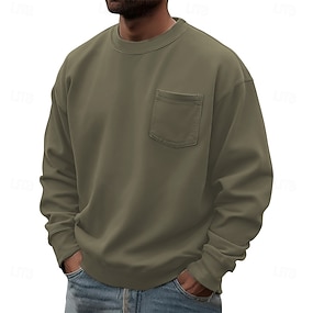 Homme Sweat-shirt Bleu Vert Véronèse Rouge Bleu Roi Marron Col ras du cou Uni Avec Poches Quotidien Sport & Loisir Fête Polyester Streetwear Basique Occasionnel Printemps Automne Vêtement Tenue Pulls
