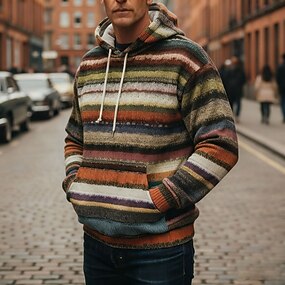 Noël Homme Rayures horizontales Sweat à capuche Mode Quotidien Occasionnel manche longue À capuche Vacances Soirée Vêtements de rue Festival Arc-en-ciel Impression Automne Hiver Designer S M L XL 2XL