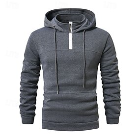 Homme Sweat à capuche Noir Vin Vert Véronèse Kaki Gris foncé À capuche Uni Quart de zip Sport & Loisir Quotidien Fête Polyester Streetwear Basique Occasionnel Printemps Automne Vêtement Tenue Pulls